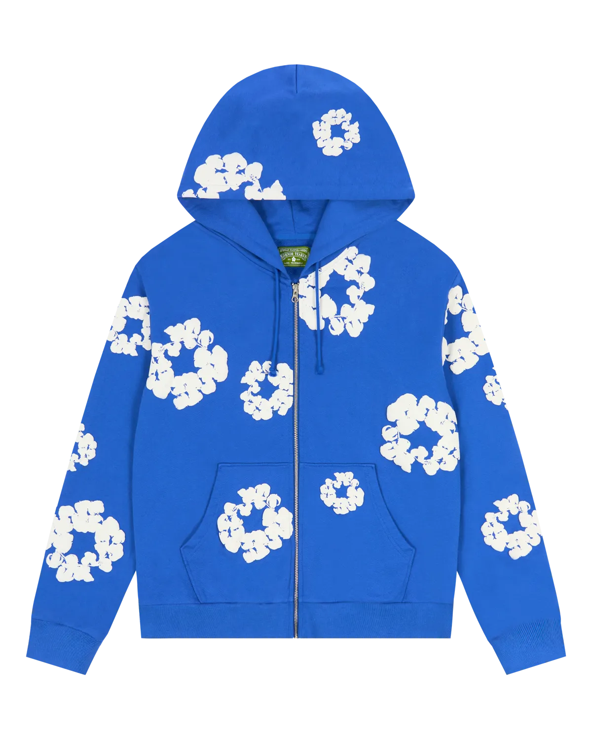 Denim Tears Cotton Wreath Zip Blue Hoodie