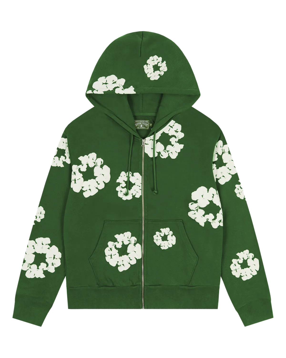 Home Hoodie Denim Tears Cotton Wreath Zip Green Hoodie