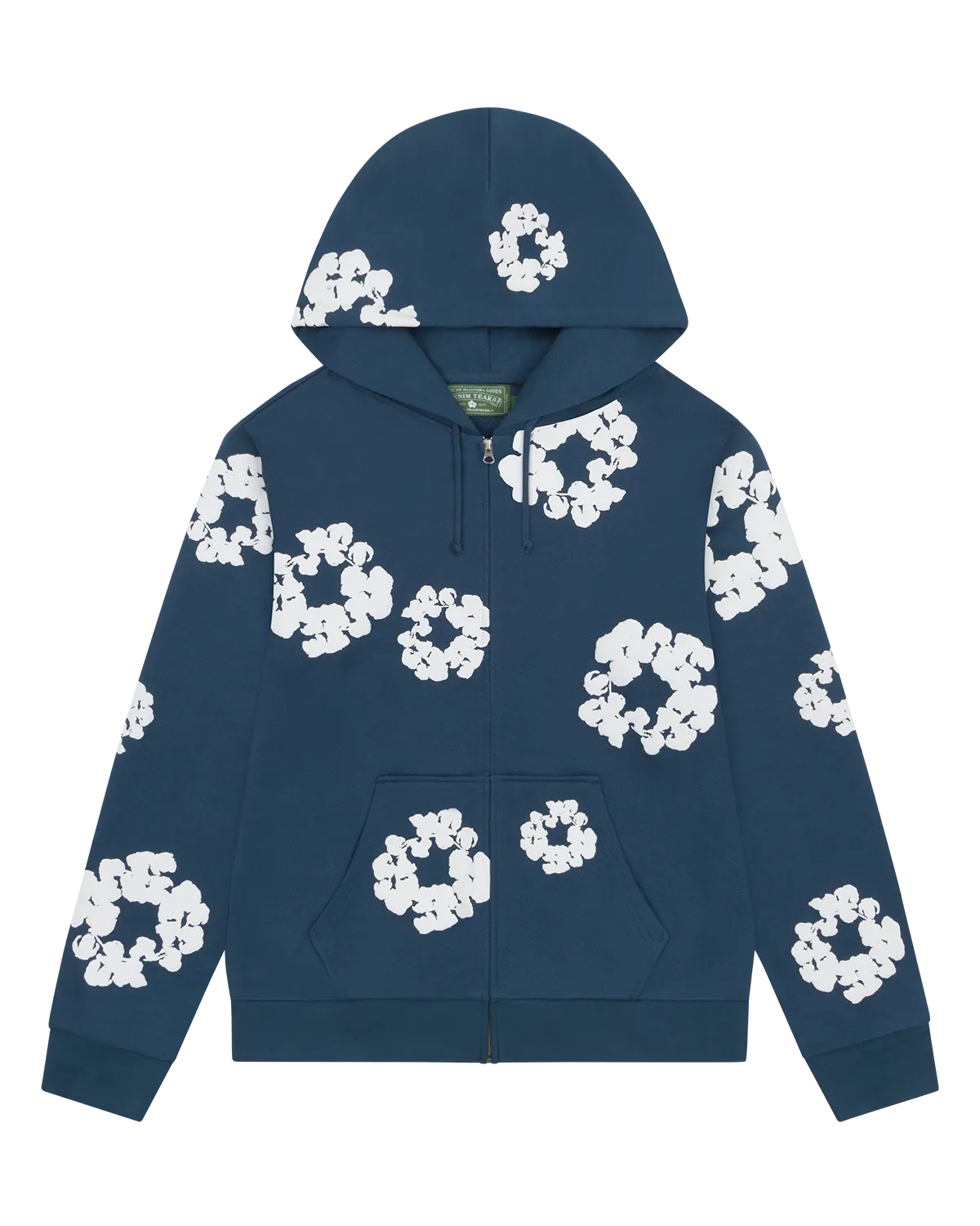 Denim Tears Cotton Wreath Zip Navy Hoodie
