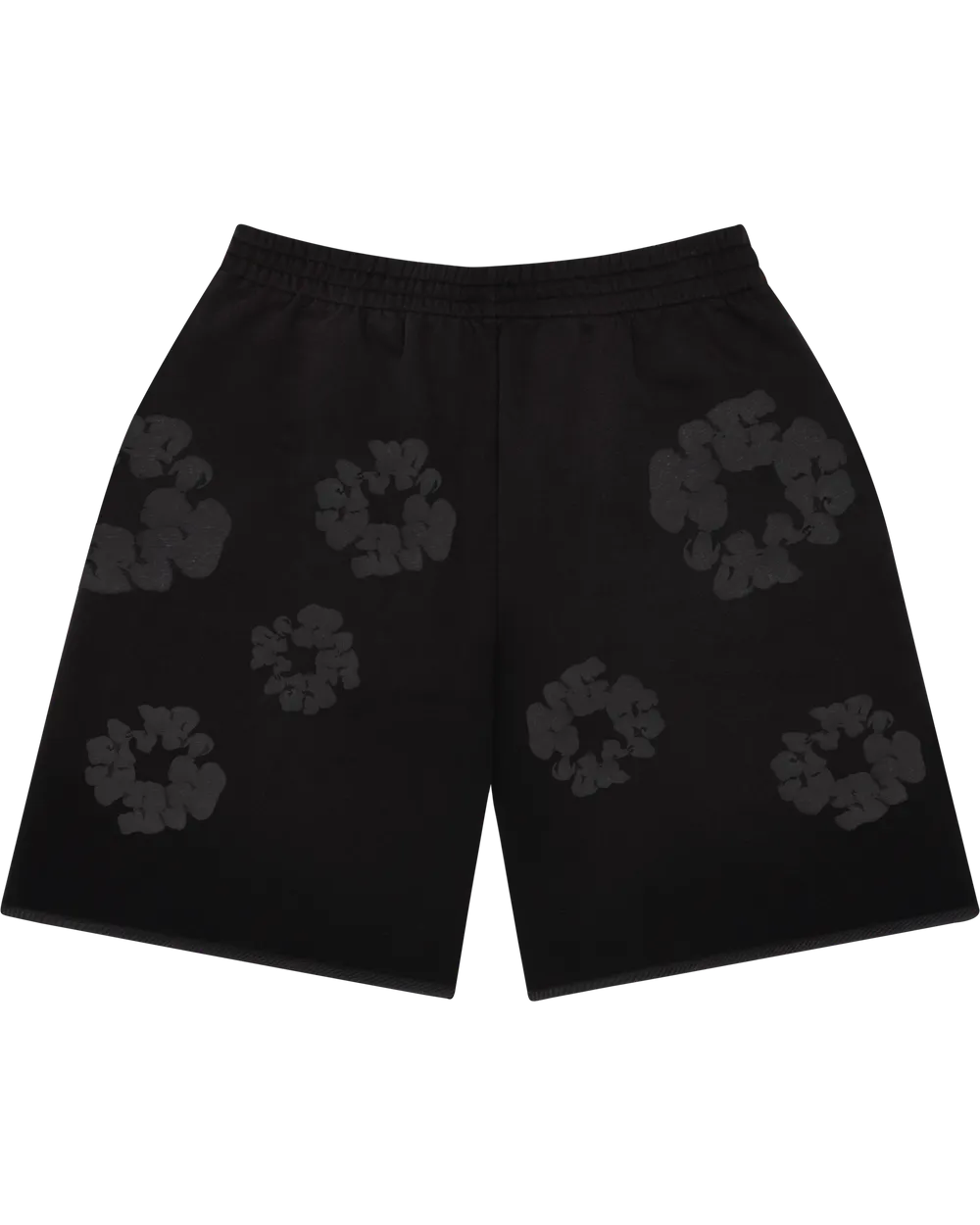 Denim Tears Faded Mono Cotton Wreath Black Sweatshorts