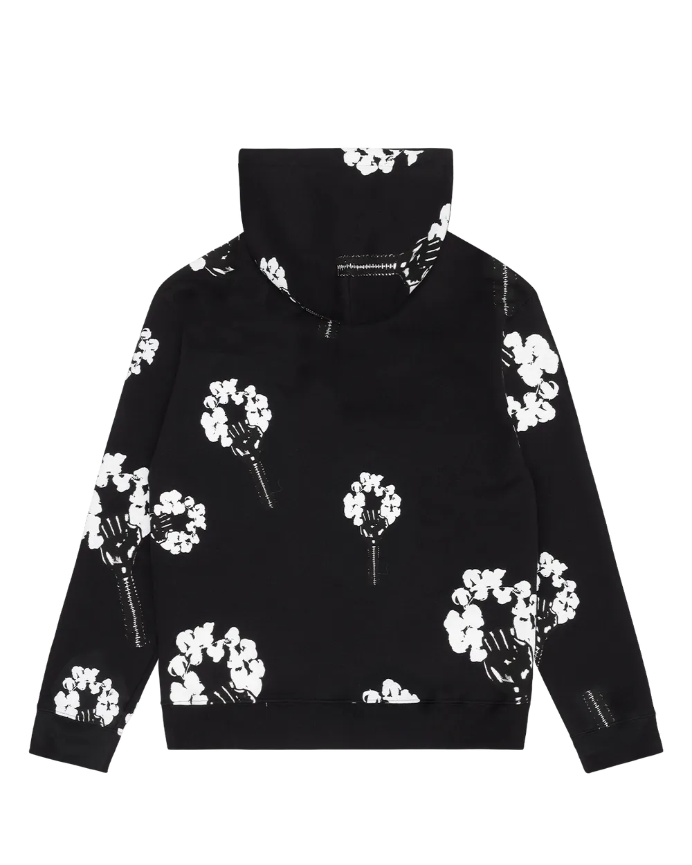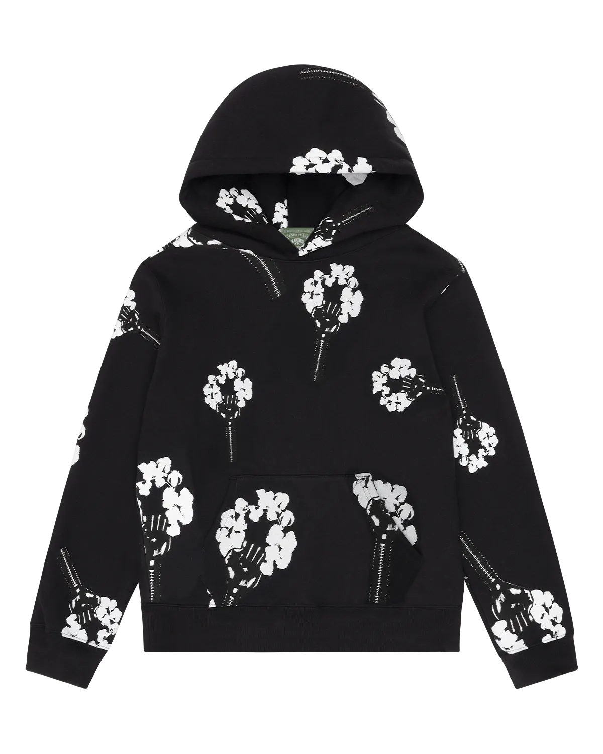 Demin Tears Denim Mono Cotton Wreath Black Hoodie