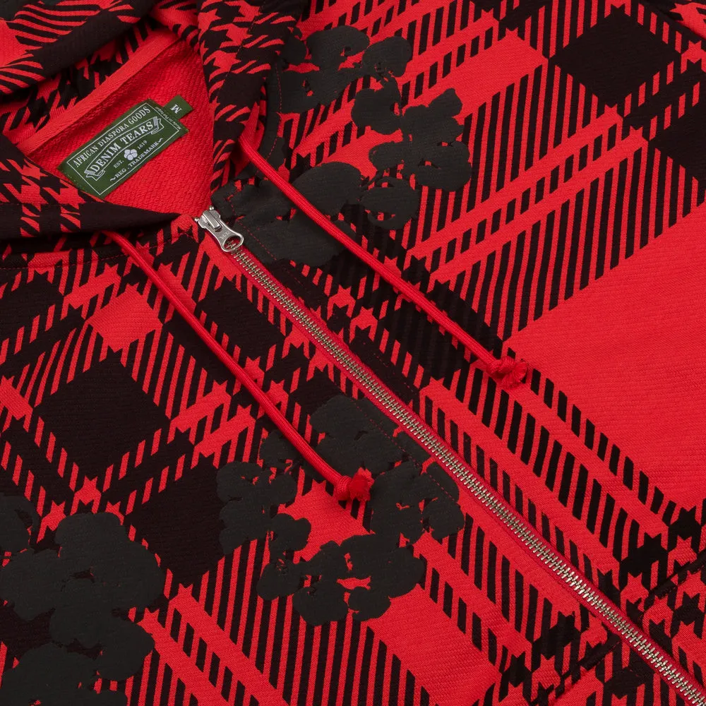Denim Tears Plaid Cotton Wreath Zip Red Hoodie